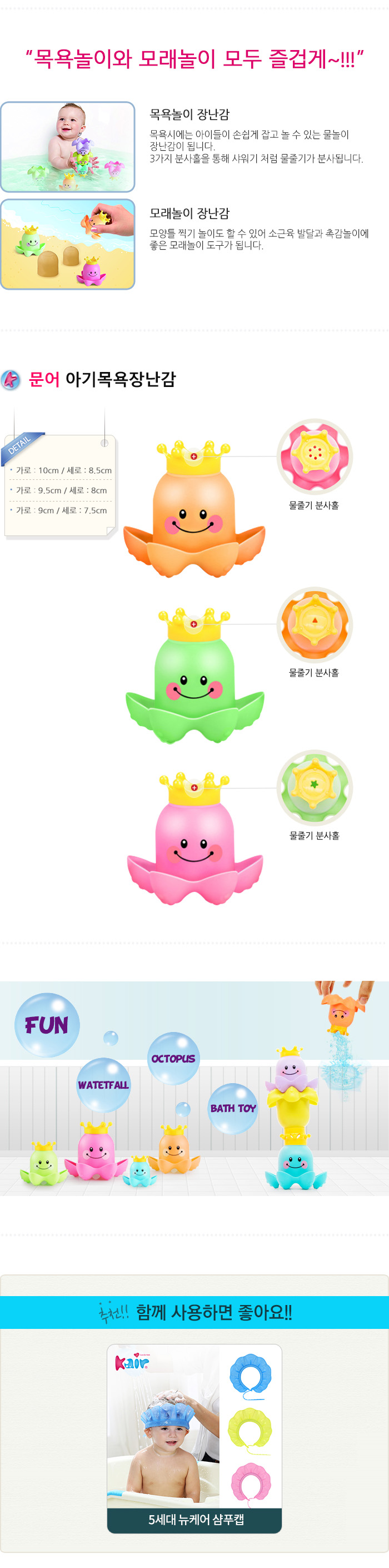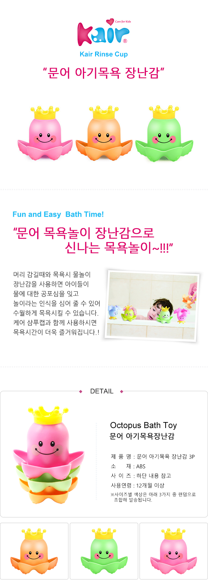 [케어]문어 아기목욕 장난감 3P
